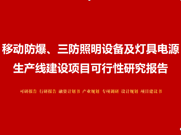 • 移动防爆、三防照明设备及灯具电源生产线建设项目可行性研究报告