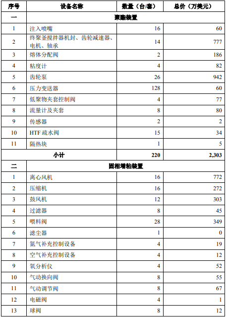 本项目的聚酯装置采用英威达-康泰斯公司的连续酯化缩聚工艺技术,固相增粘装置采用布勒公司固相增粘技术。