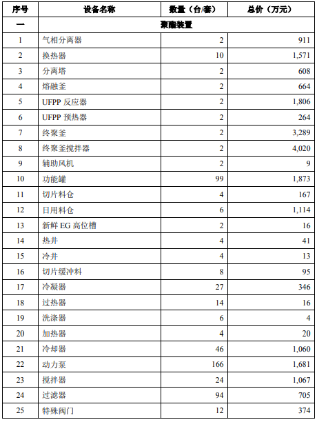 本项目由主要生产装置(聚酯装置、固相增粘装置)、辅助生产装置及公用工程设施组成。主要生产装置包括 2条 75 万吨/年瓶级聚酯基础切片生产线和 4 条 37.5万吨/年固相增粘切片生产线。