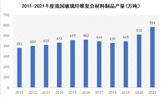 根据中国玻璃纤维工业协会发布的《中国玻璃纤维及制品行业 2021 年度发展报告》,2021 年仅玻璃纤维及制品行业主营业务收入已达到 1,244 亿元,同比增长 21.4%,利润总额则达到 231.4 亿元,同比增长 95.5%,2021 年我国玻璃纤维增强复合材料制品总产量规模约 584 万吨,同比增长 14.5%,创历史新高;报告同时指出,近年来随着疫情反复、能源政策收紧和“双碳”发展目标实施,各类能源、原材料、人工及运输等成本持续上涨,玻璃纤维及制品企业积极应对,探索实践智能制造和绿色低碳发展新工艺新技术,行业劳动生产率、产品质量当次水平等持续提升,单位产品综合能耗及污染物排放持续降低,行业积极开展供给侧结构性改革,转型高质量发展,行业整体销售利润得到显著提升。