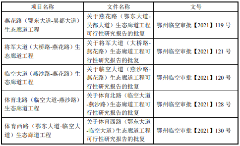 (2)燕花路(鄂东大道-吴都大道)、将军大道(大桥路-燕花路)、临空大 道(燕沙路-燕花路)等五条生态廊道工程EPC总承包