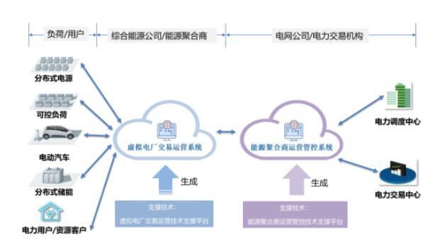 虚拟电厂是目前得到广泛认可的安全高效、充满活力的能源聚合手段,是目前公认最具发展前景的一种能源聚合商。虚拟电厂与电力市场结合目前被认为是解决需求侧响应的最有效的方法。虚拟电厂可以有效利用分布式能源,实现电力系统削峰平谷、稳定供电的需求。我国电力供应紧张、东西部电力资源供需不平衡,使得虚拟电厂在我国具有巨大市场潜力。以虚拟电厂为代表的需求侧响应业务作也将成为我国能源发展“十四五”规划中新型电力系统建设的重要内容。