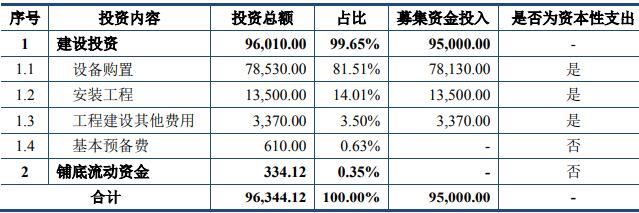 本项目总投资 96,344.12 万元,拟使用募集资金 95,000.00 万元全部用于资本性支出,具体投资构成如下表所示:单位:万元